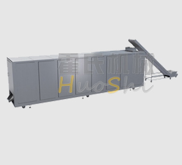 物料由加料器均勻地鋪在網(wǎng)帶上,網(wǎng)帶采用12-60目不銹鋼絲網(wǎng)。由傳動裝置拖動在干燥機(jī)內(nèi)移動。干燥機(jī)由若干單元組成,每一單元熱風(fēng)獨(dú)立循環(huán),部分尾氣由專門排濕風(fēng)機(jī)排出,廢氣由調(diào)節(jié)閥控制,熱氣由下往上或由上往下穿過鋪在網(wǎng)帶上的物料,加熱干燥并帶走水分。網(wǎng)帶緩慢移動,運(yùn)行速度可根據(jù)物料溫度自由調(diào)節(jié),干燥后的成品連續(xù)落入收料器中。上下循環(huán)單元根據(jù)用戶需要可靈活配備,單元數(shù)量可根據(jù)需要選取。