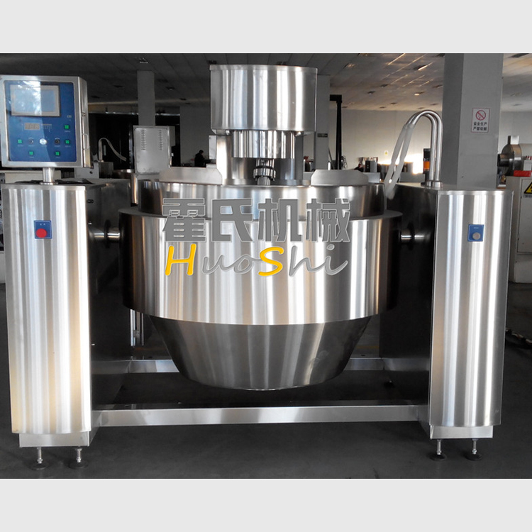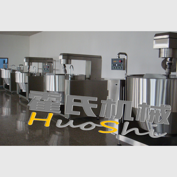 霍氏機械全自動炒醬機廣泛應用于火鍋底料、烤魚醬料、香辣醬生產加工,全自動炒醬機采用智能plc自動控制,可根據不同產品的生產工藝要求,數據打印采集,確保產品質量,香菇醬生產設備可以采用電加熱鍋底加熱面積大受熱均勻,不糊鍋,全自動炒醬機在炒制火鍋底料、醬料的過程中水分揮發快使得底料炒制的更香,時間更短品質與色澤更好。